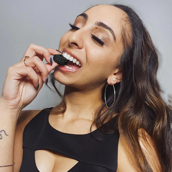 Pop the jaw trainer in your mouth and start chewing. Start slowly. Bite it down to its limit, hold for a second and release it slowly. Do this until your jaw feels tired, which will take about one to three minutes.