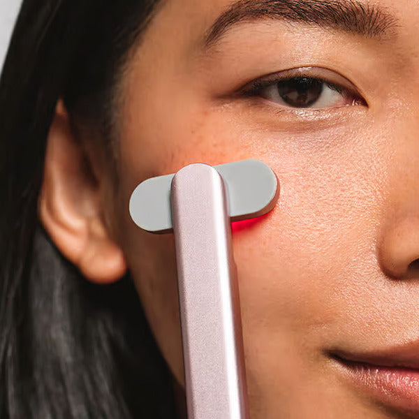 The Wand will automatically turn on when making contact with hydrated, clean skin. Glide the Wand across your face in an upward and outward moment, slowly covering your forehead, cheeks, under eyes, jaw, upper lip and neck.